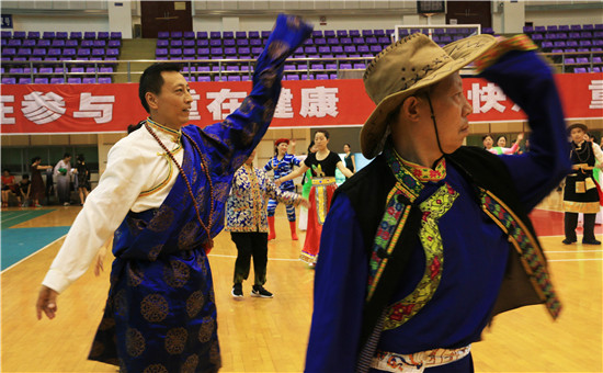 130人多人的柔力球爱好者 ---《走进新时代》柔力球展示 首先由县柔力球协会130多名会员展示了中国老体协规定套路二套,歌曲《走进新时代》的展示,参加雅安市中老年人运动会广场健身舞比赛获得二名的运动员展示了优美,激情的舞蹈及体育竞技,西区社区老体文艺队以《火火中国梦》的歌曲,创编以“中国梦,全民健身日”字样的队形赢得了广大观众热烈的掌声。县武术协会进行了少儿传统武术展示,兵舞神怡的队员们也展示了他们具有青春活力舞姿,县关工委文艺队以人们熟悉的舞曲《梁祝》展示与观众,老街社区老体协文艺队赶排的《祝福祖国三杯酒》,这首歌曲满满表达了对祖国的热爱之情,县政府机关老体协带来传统的《打莲潇》,最后,大家欣赏了由罗萨木勒锅庄队《藏族锅庄舞》引入了活动的高潮,藏族锅庄舞是一种欢乐舞,参加展示活动的运动员们都加入其中,久久不愿离去。 老街社区《祝福祖国》 男士跳藏族锅庄舞蹈 这次活动即有传统的,也有现代的,有中老年人,也有青年人,还有少年儿童。大家同感说:今年是真正的全民健身活动,整得好!其它健身活动点的活动也如茶如火的进行着。所有展示节目在队员们神采奕奕的精彩表演中,赢得了各位领导的肯定与赞扬,赢得了观看群众的阵阵叫好声和热烈热情的掌声,在非常轻松快乐的氛围中圆满结束,真是城乡团结一条心,运动健康有开心。 |