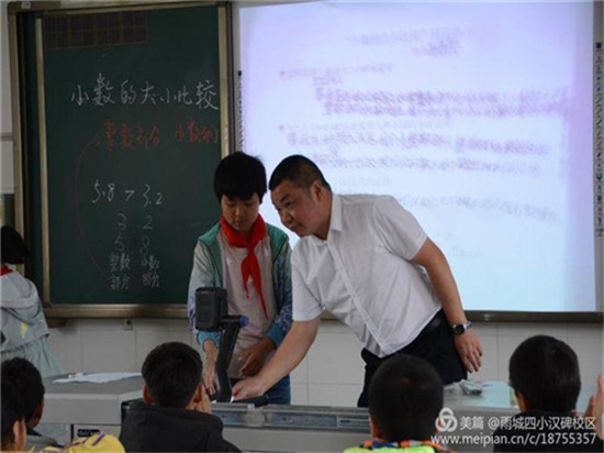 八步中心校教师虚心向工作室专家们提问:怎样改变传统式教学?工作室主任郭顺跃根据问题提出四点建议:一是老师提出问题后,应给予学生充分的时间思考;二是让学生在课堂上对问题学会质疑;三是老师应学会等待、信任学生,让学生成为学习的真正主人;四是课堂上尽量关注每一个学生。