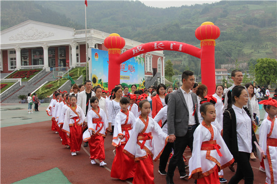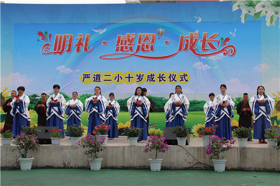 四川新闻网雅安4月21日讯(程雅军 文/图)4月20日上午九时,踏着古朴悠扬的古乐,严道第二小学219名四年级学生身着翩翩汉服,在老师的带领下信步走向学校操场,参加学校一年一度的“十岁成长礼”仪式。此次活动邀请了该校四年级全体学生家长一起见证孩子成长历程中美好而难忘的时刻。
