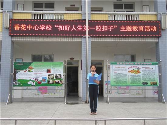 四川新闻网雅安5月26日讯 为创新开展未成年人主题教育实践活动,深化中国梦和社会主义核心价值观教育,按照中央和省文明办安排部署,雨城区香花中心校结合实际开展了“扣好人生第一粒扣子”主题教育活动。活动采用演讲、班队会、经典诵读等形式,重点引导少年儿童养成良好的行为习惯。 一是国旗下演讲,营造文明氛围。在星期一升旗仪式上,六年级二班的裴茂琳同学向全校师生做了《扣好人生第一粒扣子》的精彩演讲。裴茂琳同学在演讲中指出,要扣好的第一颗扣子包括很多方面:诚信扣、勤学扣、明理扣、守法扣……同学们要从点点滴滴的小事开始,将第一颗扣子扣好,做一个有社会责任、充满正义的小公民。与此同时,校长刘显志同志还结合实际,让孩子们严格要求自己,时时处处事事把优秀当成一种习惯,不断提升自己,完善自己。 二是主题班队会,丰富活动形式。班队会上,孩子们以讲故事、诗朗诵、谈身边典型事例、谈体会等喜闻乐见的形式,谈谈自己对“扣好人生第一粒扣子”的理解,并结合实际说说自己应该如何“扣好人生的第一粒扣子”。学生畅所欲言,教师积极引导,丰富的活动形式让孩子们更加生动形象地认识到了“扣好扣子”的重要性。 三是传统文化进校园,强化活动载体。为了让学生知礼、习礼、行礼,让文明礼仪教育散发迷人的芳香。学校还进一步加强传统文化对孩子成长的熏陶。学校教导处制定计划,每周三早读课,全校诵读《三字经》、《弟子规》,此外各班根据实际,每天抽5分钟时间自行组织诵读;同时积极搭建展示平台,在周一升旗仪式后,安排一个班级上台展示诵读成果,其它未作展示的班级在周二—周五大课间活动时原地展示;此外学校还利用校内广播系统、各班板报营造诵读氛围。美文美心,孩子们在诵读与体会中,与圣贤先哲同行,传承中华文明礼仪。 四是“劳动美”社会实践活动,树立热爱劳动思想。在少先队的组织下,学校开展形式多样的劳动实践活动,教育引导广大青少年树立热爱劳动的思想,养成热爱劳动的习惯,培养吃苦耐劳、艰苦奋斗的精神。与此同时,各科任教师还将“劳动光荣”的观念融入教育教学各方面,组织学生参与校内卫生清洁等集体劳动,引导学生力所能及地参与家庭劳动。 通过活动,学生们明白了“扣好人生的第一粒扣子”的内涵:人的成长“就像穿衣服扣扣子一样,如果第一粒扣子扣错了,其余的都会错,帮助同学们培养和践行社会主义核心价值观及树立正确的人生导向。立志从自己做起、从身边做起、从小事做起,在点滴积累中弘扬中华美德,打好人生的精神底色。(雨城区香花中心校供稿) |