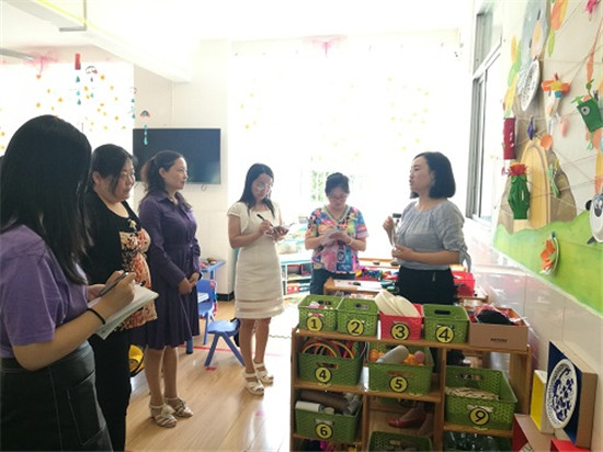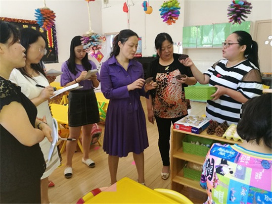 四川新闻网雅安6月7日讯 近日,雨城三幼园长及分园长前往浙江安吉、长兴参加了为期一周的访学培训。园长们带回了风靡世界的“安吉游戏”把真游戏还给儿童的教育理念;同时,让老师们结合该园的本土特色、资源,创设出深受幼儿喜爱的区角环境。 6月6日上午,在人民路园区开展了教师自制区角展评活动。各班增设了“绘本共享区”、“自制材料特色区”。教师根据本班幼儿的年龄特点、身心发展规律及认知水平和班级特色,充分利用有限的空间和身边的自然材料,如:鸡蛋壳、贝壳、黏土、松果、木屑、易拉罐、纸浆等,这些材料都来源于自然、来源于生活,教师为幼儿提供了一些低结构的小材料,会让幼儿有更大的空间去探索、去创造。 评委们从区角设计、操作材料、区角内容等方面,对各班自制区角环境创设开展情况进行了精细的指导和评判。冮园长指出:“投放区角的材料一定要满足幼儿探索、发展的需要,以幼儿为出发点和落脚点,心系孩子,选择安全、操作性强的材料,真正的让孩子玩起来,在活动中得到发展。”