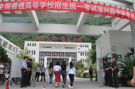 四川新闻网雅安6月8日讯 6月7日上午8:22,2018年全国普通高等学校统一招生考试宝兴县中学考点的389名考生有序进入考场,进行身份验证和安全检查。