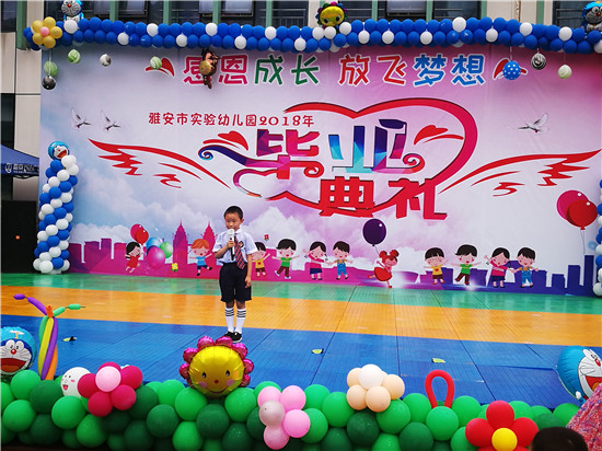 四川新闻网雅安6月25日讯(陈涛 文/图)六月的歌声是嘹亮的,六月的歌舞是美妙的,经过全体师生前期的精心准备,今(25)日上午,雅安市实验幼儿园第2018届大班毕业典礼在幼儿园大操场隆重举行。