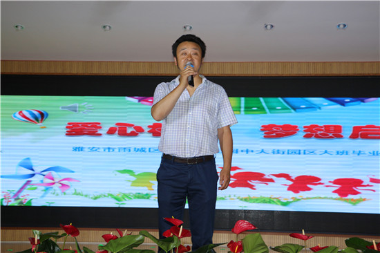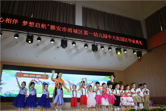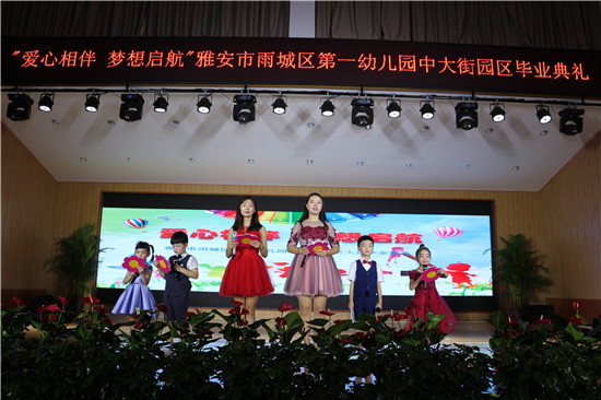 四川新闻网雅安6月26日讯 六月,是童年的摇篮,是童年的梦乡。六月,褪去了最后一道挽留,把一份难舍的情结珍藏。六月, 阳光透过树叶的缝隙,洒落一地的回忆。又是一个离别的季节,带着无尽的不舍和向往,大班小朋友即将结束三年的幼儿园生活,告别老师、告别同伴,进入下一阶段的小学生活。在这三年的幼儿园时光里,孩子们一起游戏、学习、成长,共同留下了许多美好的回忆。6月25日上午,对于雨城区一幼中大街园区的小朋友和家长而言是极其难忘的日子。这一天,全体家长和师幼欢聚在雨城区四小汉碑校区大礼堂,共同回顾成长的足迹、分享孩子们成长的快乐。