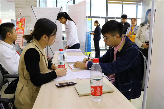 四川新闻网雅安9月29日讯(杨佳 文/图) 9月是高校毕业生求职应聘的高峰期。为深入实施高校毕业生就业创业促进计划,促进2018届高校毕业生就业创业,为用人单位和高校毕业生搭建实时高校的双向选择平台,缓解雅安企业在高校学历人才上“招工难”的问题,9月28日上午,雅安市人力资源和社会保障局举办了以“筑梦未来,与您同行”为主题的2018年高校毕业生专场招聘会。 此次招聘会共有55家企业进场招聘,包括四川一名微晶科技股份有限公司、四川航空工业川西机器有限责任公司、王老吉大健康产业(雅安)有限公司等雅安当地的知名企业,还有来自乐山的乐山-菲尼克斯半导体有限公司、乐山海棠实验中学等10余家企业。共提供岗位1500余个,岗位覆盖机械工程、技术类、营销、人事、行政、文员、财务、策划、培训、教育等。 上午9时左右,应聘者陆续赶来,不一会儿,招聘会现场就进入一片忙碌的氛围中。“我是会计专业的毕业生,想通过招聘会找一个合适的工作。”徐萍蓉一早就来到招聘会现场,首先明确了工作方向,很快便找到了意向单位。“进行初步登记后,就等着面试了”,徐萍蓉表示,虽然自己是专科学历,但招聘会上有许多机会,自己也能选择。 在招聘会现场,求职者主要有雅安籍未就业高校毕业生以及四川农业大学、雅职院、档案校、贸易校等雅安本地高校和中职院校有就业需求的应往届毕业生。为了帮助毕业生理性选择工作岗位,找到一份理想的工作,招聘会现场还设置了大学生就业创业政策咨询、劳动关系维权咨询、劳动关系维权咨询、职业指导测评3个配套服务工作台,为求职人员提供政策咨询、就业指导、职业素质测评服务等。 “我们的目标很明确,就是要把人才带回去。”乐山菲尼克斯半导体有限公司招聘主管周松介绍道,此次招聘的岗位主要有工程师和技术助理等,学历门槛和专业方面相对都能满足雅安高校毕业生。周松说,从初步登记情况来说,雅安高校应届生心态良好,具有上升空间,表示不虚此行。 此次招聘会期间,有近500余人进场求职,提供政策咨询200余人次,发放宣传资料1000余份,共有236人次与招聘企业签订意向性协议。在招聘会现场,四川航空工业川西机器有限责任公司、四川一名微晶科技股份有限公司等企业与二十余名求职者签订了意向性就业协议,招到了适合企业的人才。
