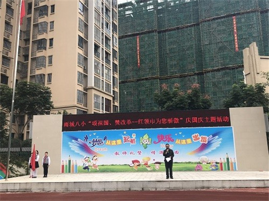 四川新闻网雅安9月30日(王藜芸 文/图)九月的天空格外爽朗,为歌颂祖国,喜迎国庆,今(30)日,雨城区第八小学全体师生欢聚校园,开展了以“颂祖国,赞改革————红领巾为您骄傲”的主题活动。 首先,全体师生肃立,奏国歌。少先队辅导员李禹梅就此次活动的主题以及国庆的由来向大家作以简单介绍。然后校合唱队的孩子们带来了《歌唱祖国》,自豪自信的歌声,充分表达了对祖国母亲崇高的敬意与真挚的爱慕。三年级二班带国旗下的演讲《争做祖国好少年》,号召全校学生热爱祖国、理想远大,品德优良、团结友爱,挽起友谊的双手向着未来,勇敢登攀,为了实现中华民族的伟大复兴,努力向前。 最后钟杰副校长宣讲了《守护网络安全,呵护精神家园》知识讲座,要求每一位学生遵守法纪法规,做文明网络人。本次活动在全校师生朗诵社会主义核心价值观中取得完满成功。 |
