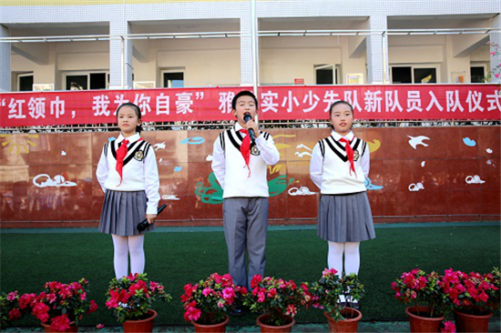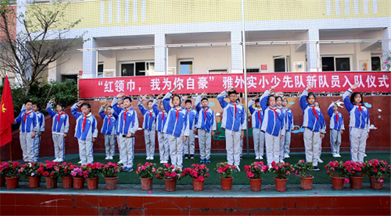 四川新闻网雅安10月11日讯 昨(10)日下午,雅外实小全体队员齐聚操场,举行雅外实小2018“红领巾 我为你自豪”新队员入队仪式。 晴空万里,骄阳下红旗舞动,领巾飘扬。雅外实小一年级275名新队员在悠扬的《快乐的节日》乐曲中步入升旗台,五年级老队员为他们授红领巾。在鲜艳的队旗下,队员们庄严宣誓,新队员王思媛代表新队员发言。 入队仪式上,旗手在明快的出旗曲中英姿飒爽,队员们在呼号声中雄姿英发。整齐的队列,饱满的精神为“红领巾”添上一抹亮光,队员们以“红领巾”自豪,为新的挑战蓄力。 活动中,五、六年级22名大队部成员接受学校黄校长、李校长等学校领导授予的肩章。队员代表卿一江发言:肩上多了一块肩章,多了一份责任。我们会努力做到公平公正,为建设雅外实小出力,为红领巾增光添彩。(雅外实小供稿) |