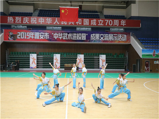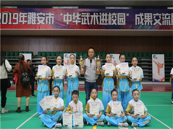 四川新闻网雅安10月25日讯 10月25日,由市文明办、市教育局、市文化体育和旅游局联合主办的2019年雅安市“中华武术进校园”成果交流展示活动在名山区体育馆隆重举行,来自六县两区的12支武术队参加了本次活动。实验小学教育集团北二路校区派出了11名队员参赛,荣获了两项优胜奖,武术队兰世雷老师被评为优秀教练。