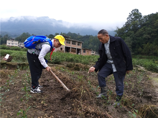 校外研学 寓教于生活 实践中成才 “纸上得来终觉浅,绝知此事要躬行。”为了让同学们在生活中学习,在实践中成长,10月22日下午,同学们在教官、老师的带领下走访基地附近的新农村,他们就农村儿童的教育、村民的经济收入、农村环境卫生……做了深入细致地采访,深切感受到了农村的新变化,但也发现农村留守儿童很普遍的问题。同时,他们还挨家挨户向村民宣讲创城知识,有的同学还深入田间地头向老农学习锄地、播种、捡柴、割猪草等农事,亲身体验“锄禾日当午,汗滴禾下土……粒粒皆辛苦”,进而养成节约粮食,珍惜他人劳动成果的好习惯。