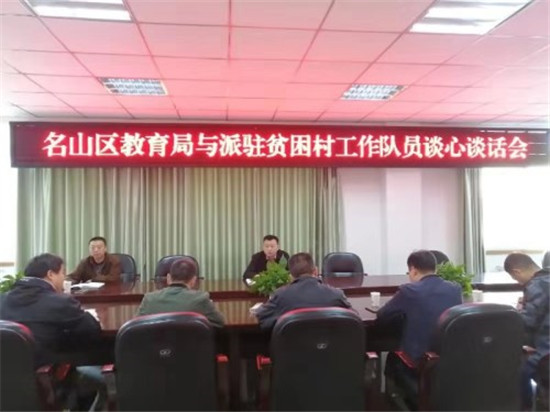四川新闻网雅安10月30日讯 第二批“不忘初心、牢记使命”主题教育启动以来,名山区委教育工委、区教育局党组再次聚焦脱贫攻坚一线工作,结合主题教育,组织引导教育系统派驻贫困村工作队员坚守脱贫攻坚初心,履行驻村工作使命,主动寻找工作差距,抓好整改措施落实,转作风、守底线,以纪律作保障,在驻村工作岗位上为全区脱贫攻坚做出奉献。