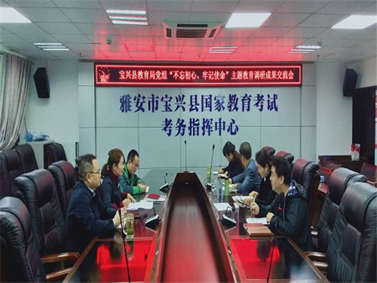 四川新闻网雅安10月30日讯(邬永刚 文/图)10月30日上午,宝兴县教育局党组召开“不忘初心、牢记使命”主题教育调研成果交流会。县委主题教育第六巡回指导组岳敏到会指导,县教育局党组书记、局长李德伟主持会议。
