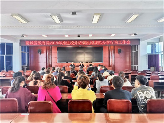 四川新闻网雅安10月31日讯 围绕校外培训机构被纳入创建全国文明城市测评体系的新形势,进一步加强和推进校外培训机构规范有序发展,10月29日,雨城区教育局组织召开2019年推进校外培训机构规范办学行为工作会,区教育局分管负责同志、全区47所校外培训机构负责人参加会议。