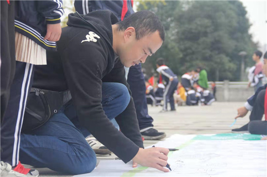 你我共创城。在签名墙上签下自己的名字,创文明城,做文明人,你我共创城。