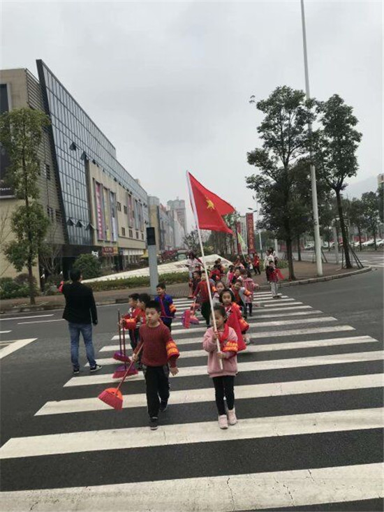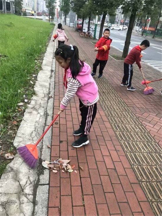 11月4日,队员们在学校少先队辅导员吴杨老师的带领下走上街头开展卫生环保志愿活动。队员们带着扫帚、撮箕和各自准备的垃圾袋,扫、捧、捏、捡……队员们不怕脏、不怕累,认真清理了枯枝、树叶、烟蒂、包装纸等杂物,衣服被抹脏了、脸被灰尘涂上了“油彩”,但队员们的热情丝毫不减。一个个美丽的身影,为城区绘出了一幅温馨的画卷。仅半小时时间,那一双双“勤劳的小手”便“绘”出了一片洁净、美丽的新天地!回头看着他们的劳动成果,队员们洋溢出胜利的微笑!