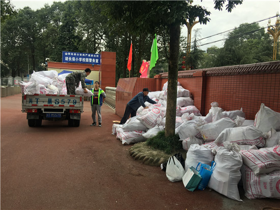 为了营造全民参与环保、人人热爱环保的舆论氛围。11月4日集团德育主任罗秀娟在升旗仪式集会上向全校师生宣读倡议书,并向全校师生提出加入“生态荥经,一木环保”校园公益行动要求。经过各班老师通过各种形式的广泛宣传,学生积极参与捐赠活动,全校2000多师生捐出大量的废旧书报。11月8日文轩书站专业回收人员到学校进行回收,经过统计全校师生自愿捐出废旧书报8808千克。
