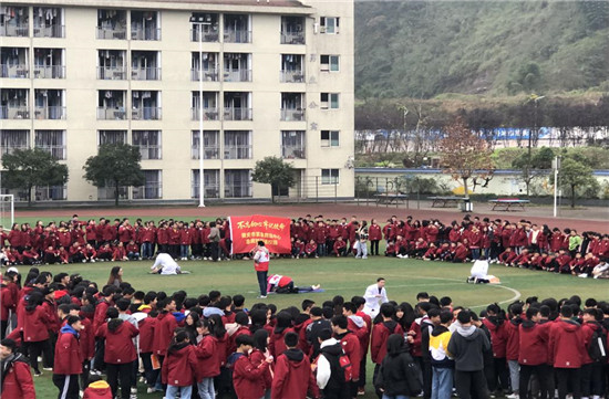 四川新闻网雅安11月12日讯(蒋春梅 文/图)为了践行“不忘初心、牢记使命”的主题教育精神,普及急救知识,提高学生的自救互救能力。11月11日早上,雅安市紧急救援中心组织救护师资与雨城区红十字会联合在雅安市雨城区第二中学开展“不忘初心、牢记使命 急救知识进校园”的活动,全校师生八百余人参加。