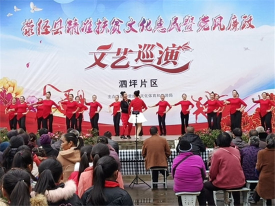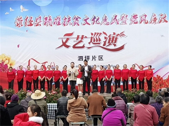 四川新闻网雅安11月13日讯(王媞 肖文芳 文/图) 为树荥经县文化惠民品牌, 把文化精准扶贫工作落实到位,11月12日上午,由荥经县体育局和旅游局主办的“精准扶贫文化惠民暨党风廉政”文艺巡回演出活动,在荥河乡中心小学拉开帷幕。学校全体师生及周边老百姓共同参与。 本次文艺巡演,形式多样。独唱《在那桃花盛开的地方》、舞蹈《太阳出来喜洋洋》《水兵舞》、诗朗诵《我的祖国》等节目深受观众喜爱。特别是《精准扶贫三句半》,通俗易懂的话语结合乡土资源,把精准扶贫好政策讲得头头是道,观众连连叫好。同时主持人穿插精准扶贫、文化惠民知识、党风廉政抢答,在积极互动中,老百姓和师生了解到了更多相关知识。活动在《我和我的祖国》旋律中落下帷幕。 此次巡演活动,以文艺的形式宣传精准扶贫政策,营造了良好的文化氛围,让学生在潜移默化中受到了爱国主义教育。 |