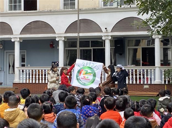 12月2日上午,在工作室导师田川的带领下,跟岗教师怀着期待的心情走进了宜宾市机关幼儿园。园长邹晓敏热情的接待了我们。随后跟岗教师参观了幼儿园环境创设,观看了庄严肃穆的升旗仪式,以及12.2“全国交通安全日”有奖知识竞猜主题活动,并参加了由谢鑫副园长主持的幼儿园行政例会。