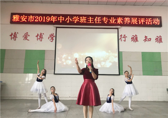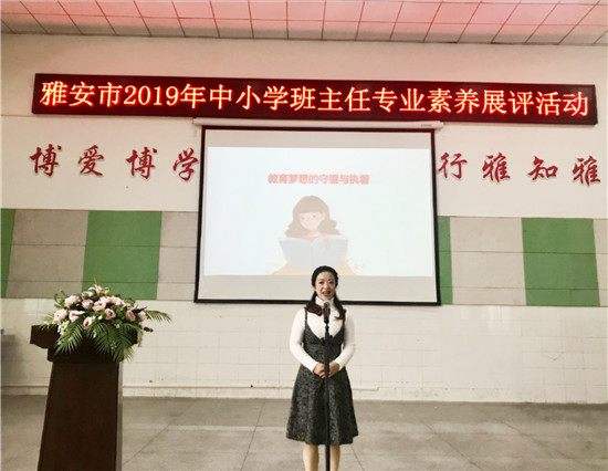 雅安市外国语实验小学老师何秋月以扎实的基本功、专业的素养、出众的才华一举囊获班队会设计一等奖、案例分析一等奖、教育叙事演讲一等奖、才艺展示一等奖,以绝对的优势夺得总分第一名。