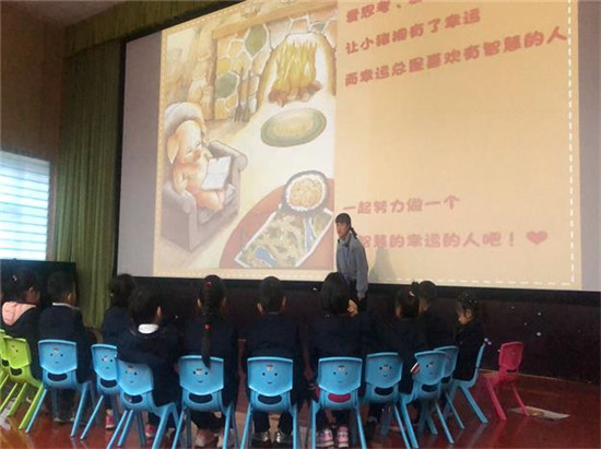 来自中大街园区的李雪老师代表雨城区一幼为现场同仁展示了大班语言活动《我的幸运一天》。李老师用精彩的PPT把孩子带入情境中,幽默有趣的故事情节,加上李老师绘声绘色地讲述,深深地吸引了孩子们。最后,师幼共同探讨“幸运”发生转变的原因,体会小猪勇敢冷静的处理危险。这不光让孩子体验到了阅读的快乐,还从中学会了如何机智灵活地面对危险。