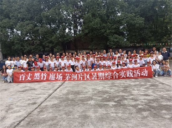 综合实践搭建学生全面发展平台。廖场小学校外实践基地从2015年始建至今已组织开展11期综合实践活动。每期活动3-5天,可一次性接纳50名学员活动、住宿。除了本乡中心小学学生前来活动,还吸引了附近的百丈镇、黑竹镇、茅河乡等学校带学生前往基地开展暑期综合实践活动。综合实践基地课程设置丰富,参训学生在辅导员带领下进行军训模拟、团队建设、拓展训练、艺术体验,训练之余还学烹饪,学种菜,学修枝,学嫁接,学习陶艺、墙画和古法造纸,洗衣做饭、整理内务,学员们在劳动中体验生活,在体验中锻炼意志、培养兴趣、增长知识、收获快乐。