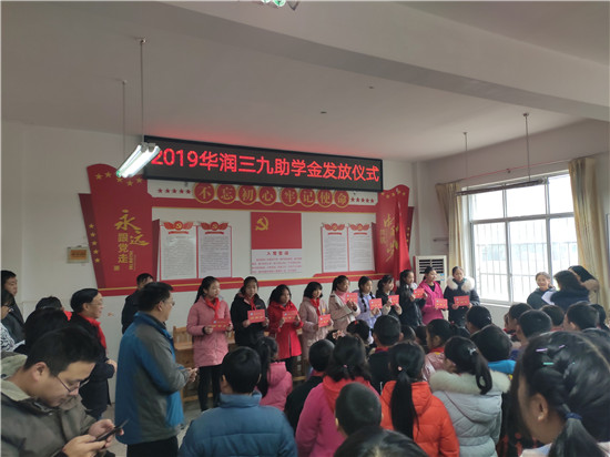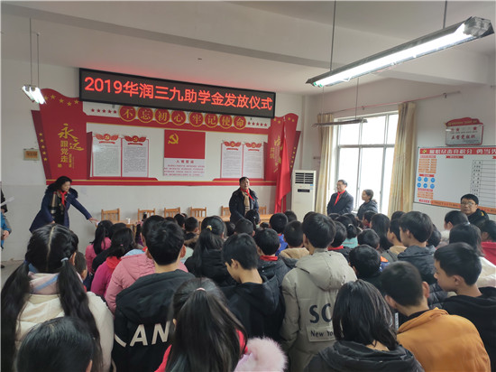 此次助学活动是有雅安教育基金会牵头,华润三九(雅安)药业有限公司捐赠,为该校品学兼优的学生分别发放一、二、三等奖的助学基金。