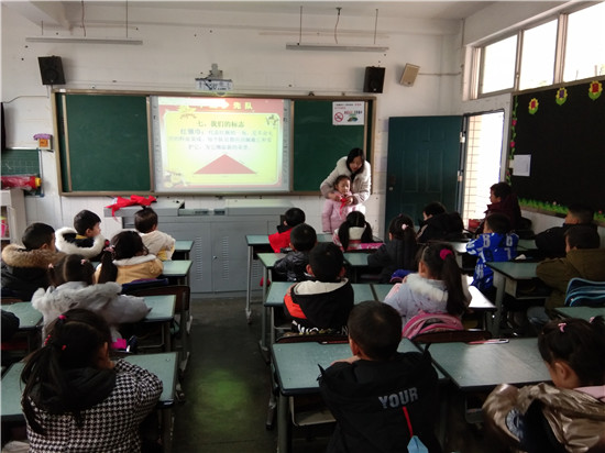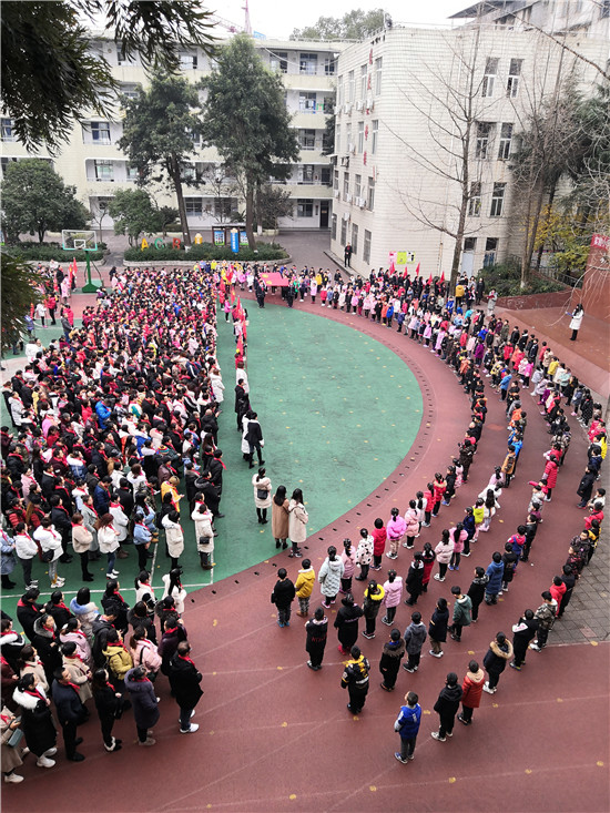 12月31日8:50随着主持人的正式宣布,新队员入队仪式拉开序幕。首先举行的是升旗仪式,接着康藏路校区执行校长胥凤琴致新年贺词。胥校长肯定了全校师生在2019年所开展的特色活动,所取得各项突出成绩,并对全校师生提出了新学年的新希望。 在铿锵有力的少先队出旗曲中,两位小主持人宣布入队仪式正式开始。首先,老队员为一年级中队辅导员佩戴红领巾,为中队长授队旗。然后,全体老师和同学们齐唱队歌《我们是共产主义接班人》。接着,大队部辅导员李文静宣布了入队决议。最后,辅导员带领新队员在鲜艳的队旗下庄严宣誓,新队员的铮铮誓言响彻实小校园的上空!