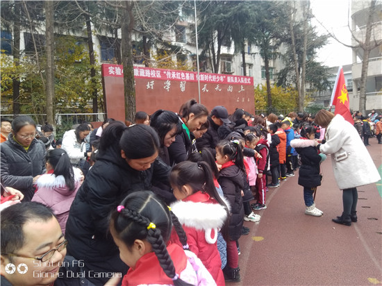 四川新闻网雅安1月1日讯(施永琼 张玉 文/图)12月31日,在这个特别的日子里,雨城区实验小学教育集团康藏路校区少先队大队部隆重举行了以“传承红色基因·做新时代好少年”为主题的一年级新队员入队仪式。实验小学教育集团康藏路校区全体师生和一年级全体家长共2000多人参加了本次活动,一年级273个小朋友光荣加入中国少年先锋队组织。 入队仪式前,一年级各中队利用晨会、班队课对学生进行了队前教育。学生们在辅导员和班主任的引导下,初步知道了红领巾、队旗、队徽、队礼、呼号的意义;了解了队知识,认真书写了入队申请书,以实际行动,争取早日加入中国少年先锋队。各中队辅导员提前教会孩子如何佩戴红领巾、行队礼、唱队歌。