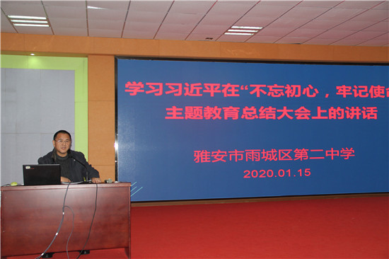 四川新闻网雅安1月16日讯 1月15日上午,雅安市雨城区第二中学召开期末工作总结会暨“不忘初心、牢记使命”主题教育活动,学校全体教职工参加。