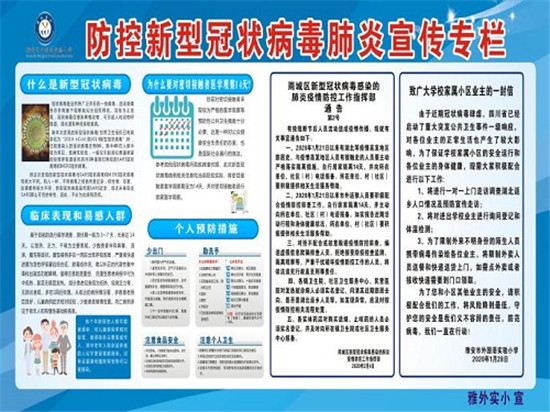 四川新闻网雅安2月17日讯 春节前夕,突如其来的疫情给传统佳节蒙上了一层阴影,四川省启动一级响应后,全民动员抗击新冠肺炎。雅安外国语实验小学庚即响应区教育局号召,启动应急预案,成立学校疫情防控小组,校党支部副书记、副校长周洪祥临危受命,担任副组长。从这一刻起,在雅外实小的自管大院里,就总能见到他奔波忙碌的身影。
