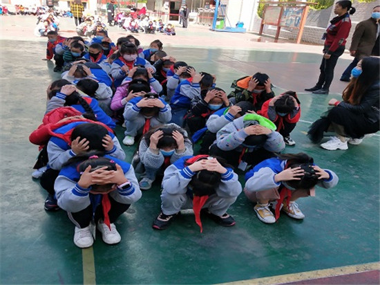 为确保演练取得实效,演练前,按照“安全第一,确保有序,责任明确,落实细节”的原则,学校对学生进行了应急演练指导培训。在应急演练活动中,学生在老师的带领下不慌张、有秩序、相互关爱的沿着指定路线迅速撤离到学校操场的安全地带。