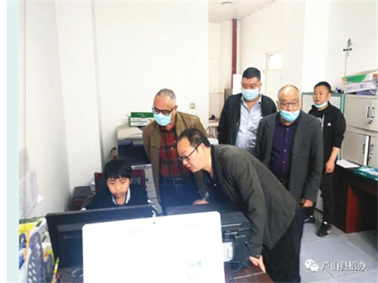 四川新闻网雅安4月24日讯(王尧江 文/图)4月17日,雅安市招办主任杨学武率检查组到芦山县飞仙中心校、芦山县龙门镇晨阳希望学校检查指导中考网上报名工作。芦山县招办负责人陪同。 杨学武听取了芦山县网上报名工作宣传、报名设备完善、操作培训等方面情况汇报,实地察看了学生模拟操作网报流程,对芦山县中考网上报名准备工作予以肯定。