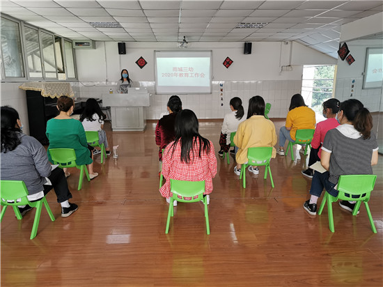 四川新闻网雅安4月30日讯 4月29日,雨城三幼城后路、人民路,两园区分别传达了4月28日雅安市教育工作视频会议精神。 会上,冮园长及分园长按照会议精神,对该园近期的工作进行了部署,要求教职工认真落实会议内容,遵守上级相关规定,五一假期仍属于新冠肺炎的疫情防控的关键期,不能放松警惕,建议师生尽量不外出,不离开雅安市区范围内。如有特殊情况需要外出的,提前向幼儿园报备。现在正值水痘等春季传染病高发期,要求老师对孩子及家长做好预防、教育等相关工作。近期,气温逐渐升高,做好防汛、防地质灾害、防溺水工作。