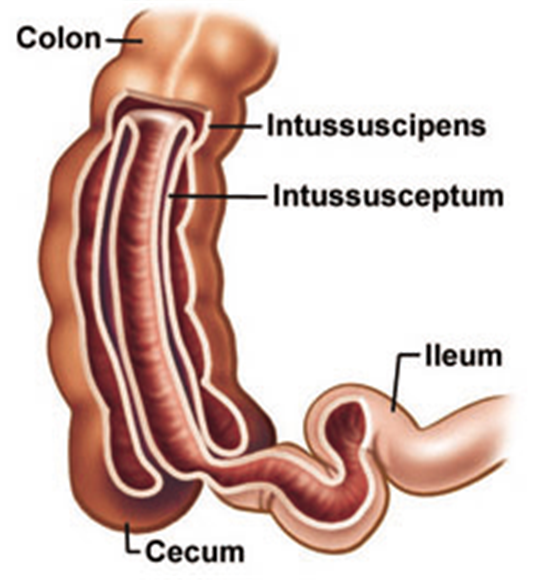 女性患儿1岁半,入院前两天无明显诱因出现阵发性腹痛伴随呕吐。到雅职附院就诊,经过检查发现患儿右侧腹异常回声,急诊以“肠套叠”收入住院。4月28日17时50分,程鑫带领团队在超声检查室为患儿进行超声引导下肠套叠生理盐水灌肠复位术,在注入约1000ml生理盐水后肠管完全解套,“同心圆”消失,复位成功。术后很快即开始恢复正常活动及饮食,治疗达预期满意效果。 外三科主任程鑫副教授介绍:肠套叠是指一段肠管套入与其相连的肠腔内,是小儿外科常见的急腹症,并导致肠内容物通过障碍,是婴幼儿肠梗阻的主要原因之一。临床表现主要为阵发性腹痛、呕吐、果酱便和腹部包块。早期诊断及灌肠复位是提高治愈率、减少并发症和降低病死率主要手段,如不及时治疗,被套肠管会因为缺血坏死,严重会危及患儿生命。 肠套叠示意图 既往治疗肠套叠方法有:开腹手术复位治疗、X线引导下空气或钡剂灌肠。