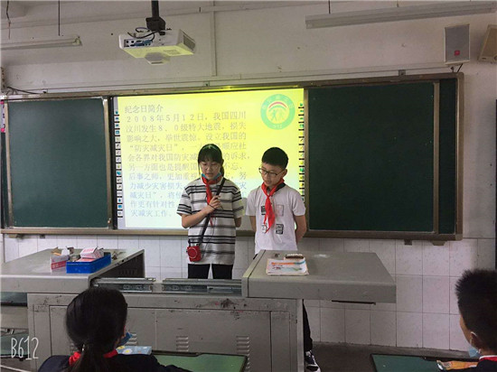 班队会围绕“防灾减灾”主题,针对地震、水灾、风灾、火灾等灾害风险的特点,组织学生观看了防震知识宣传片、自救互救宣传片;学习防震减灾、防风防雷、消防安全、事故防范、卫生防疫等方面的知识;讲解了地震的发生原因、发生前兆等知识,介绍了地震发生时室内外应急常识、自救互救常识和逃生常识,教育学生要时刻关注身边的灾害风险,教会学生掌握灾害发生时的自救、互救和逃生技能。