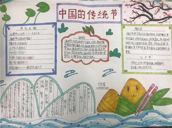 活动前,孩子们在老师的指导下,广泛收集和整理相关信息,精心制作手抄报。活动中,选派班队干部当“小老师”,中华传统节日专题知识在“小老师”的口中娓娓道来。