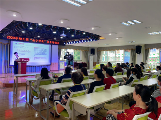四川新闻网雅安5月26日讯 孩子是什么?孩子是未来的希望,孩子是快乐的源泉,孩子是纯真的向往,尊重孩子生命的独特性,促进他们的多元发展。让每一朵花都怒放、让每一颗星都闪亮。 为进一步引导广大家长转变教育观念,掌握科学和先进的教育方法,进一步明确幼儿园小学化倾向的危害,雨城一幼于5月25日下午三点举行了关于幼儿园“去小学化”的家长培训会! 教育家卢梭曾说过这样的话:"大自然希望儿童在成人以前,就要像儿童的样子。"雨城区一幼田川园长以她丰富的教育经验和专业的理论素养为家长们解析了孩子学习的特点、幼儿园的教育内容和方法、去小学化的重要性等。 田园长说,在社会竞争加剧及知识经济时代到来的今天,人们更深刻地认识到幼儿时期各种能力习惯的学习对其后续发展的重要性,导致了人们对学前教育的高度重视,为了迎合家长盼子成才的迫切需求,许多幼儿园开始将小学的学业提前到幼儿时期进行学习,小学时期的日常教学活动占据了幼儿的大部分游戏时间,这种学前教育的小学化倾向违背了幼儿身心发展的特点和幼儿教育的规律,超出了幼儿所能接受教育的适宜度,不利于幼儿的全面健康成长和幼儿教育的发展。 田川园长利用大量的案例分析帮助家长克服“让学生赢在起跑线上”的错误认识,通过生动的案例,结合自己的教育经验,田园长强调了从幼儿园时期进行“小学化”倾向教学对孩子的危害,有理有据。