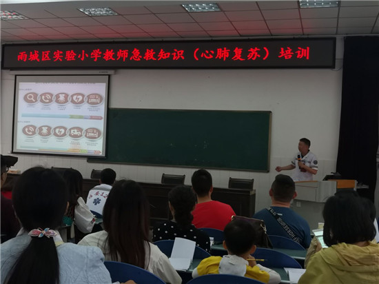 四川新闻网雅安5月28日讯(陆艳 文/图)为深入推进平安校园建设,加强学校安全工作的管理,提高教师应对处置现场突发事件能力,使教师能在校园突发事件中运用简单易行的科学急救知识去进行急救,5月27日下午,雨城区实验小学特邀雅安市第二人民医院医务科科长唐、事业发展部主任冯萍等一行四人,就应急知识对全校教师开展培训。