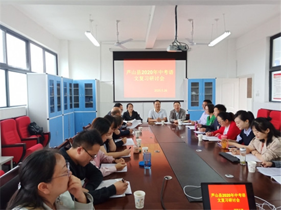 四川新闻网雅安6月2日讯 为了准确把握中考动向,提高复习效率,5月26日,该室在蓝光芦山县第三初级中学组织召开了“九年级语文中考复习研讨会”。会议由教研室语文教研员杨敏主持,共22名九年级语文教师参会。