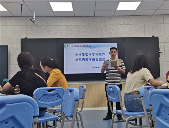四川新闻网雅安6月5日讯(余琼 文/图)为进一步适应教育现代化的要求,落实学科教研活动,全面把握当前教育的现实情况和新趋势,6月3日下午,雨城区实验小学教导处根据四川省教育科学研究院办公室线上教研通知,组织全校数学老师在录播室通过线上直播观看了主题为“小学生数学学科素养培养与常态教学融合尝试”的网络研讨活动。活动由教导主任苟文祥主持,全校数学教师都参加了此次活动。