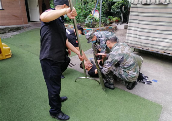 提高幼儿园处置突发暴力事件的应急能力,加强幼儿园的防恐防暴工作,6月10号上午,雅安市雨城区第一幼儿园中大街园区和中信园区联合预备役官兵与特巡警大队开展了一场幼儿园防恐防暴安全演练活动。 在演练活动前,幼儿园制定了详细的防暴演练方案,并召开专题会议,让每位工作人员都明确自己的职责与责任。 上午9:30时,在孩子们开展正常活动时,一名蒙面“歹徒”手持武器闯入幼儿园门口,门卫保安立即进行了拦截,同时,园长发出警报信号,并拨打报警电话。室外活动的幼儿在老师的带领下迅速跑向最近的教室躲避,老师快速关紧教室门窗,防止“歹徒”闯入班级伤害幼儿。 与此同时,保安和警员用防暴器械与“歹徒”进行搏斗,最终在保安、教职员工及警员的共同努力下,“歹徒”被制服了。演练结束后,园长主持演练活动的总结,邀请警员叔叔对全体教师和幼儿进行详细的讲解和演示指导,以及遇到歹徒时的正确处理办法。 希望通过这个月安全教育活动的开展,使雨城区一幼的师生加深安全防范意识,增强应对突发安全事件的能力,把安全教育落实到实际行动中,齐心协力共创安全和谐的校园。 |