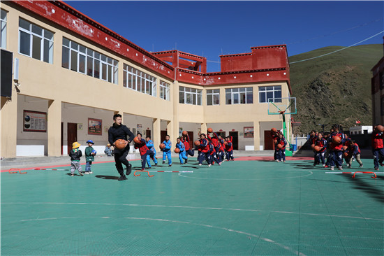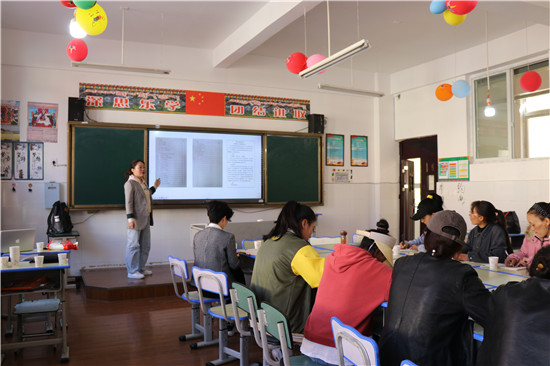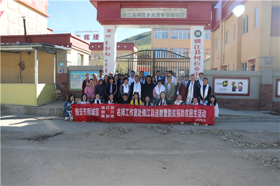 四川新闻网雅安6月15日讯(陈剑锋 杨丹 文/图)为支持民族地区教育,促进汉、藏两地教育教学交流,积极发挥四川省谢建明名校长工作室的辐射引领作用,6月12日,四川省谢建明名校长工作室组织带领雨城区陈剑锋、田川、杨红婴名师工作室共20余人赴甘孜州雅江县柯拉乡中心校开展送教暨脱贫捐助贫困活动。 在柯拉乡中心校,送教老师分组开展了送教活动。 朱光耀老师执教篮球课(水平二)——《篮球运球上篮基本步伐》。课上,朱老师以游戏导入,以小组竞赛的形式突破运球上篮基本步伐重难点,整堂课学生在“玩中学,玩中练”,传递“学生主体,教师主导”的课程理念。课后体育工作室领衔人杨红婴老师开展了《落实立德树人根本任务,培养学生体育核心素养》专题讲座。杨老师从一堂好课帮助学生形成体育核心素养谈起,谈到“五育并举”体育的育人功能,强调体育课中除了知识技能的学习,更重要的是帮助学生养成体育品德。