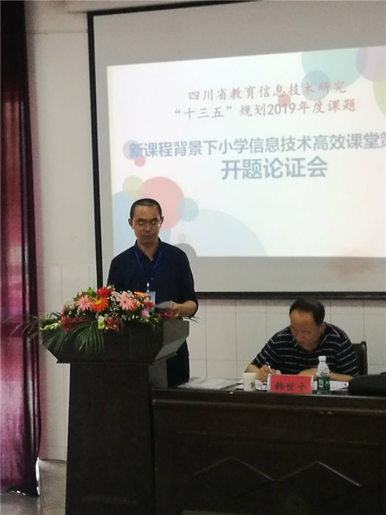 四川新闻网雅安6月29日讯(高显群 廖丽君 文/图)为优化小学信息技术课堂教育教学,以课题研究加深和促进对新教材的认识和理解,以课题研究引领教师专业成长,以课题研究助推学校发展,6月28日上午,雨城区实验小学申报的“四川省教育信息技术研究‘十三五’规划2019年度规划课题”――《新课程背景下小学信息技术高效课堂策略研究》开题论证会在实验小学阶梯教室举行。参与课题审议的专家组成员有雅安市教育技术信息管理中心主任李宏,教研室主任李效勇,雅安市雨城区教育局教学研究和教师培训中心副主任韩世平、姜桂林,雨城区实验小学教育集团校长洪小平。 开题会上,洪小平校长就学校在小学信息技术教育方面所取得的成绩作了简要介绍:1998年我校就被评为“全国现代化信息技术学校”;2017年起学校就编程及人工智能课程建立了学生实践场所,组织三——五年级学生进行信息技术创新课程学习。雅安市教育技术信息管理中心李宏主任宣读了立项通知书。课题组组长廖丽君老师代表课题组作开题汇报,她结合国家政策导向及区域发展变化提出了:开发具有学校特色的基于编程、人工智能下的课程资源;探索STEM教育理念下的项目式教学模式及新课程背景下小学信息技术课堂评价机制;并将高效课堂与创新应用相结合,旨在培养学生的信息化素养及创新意识。