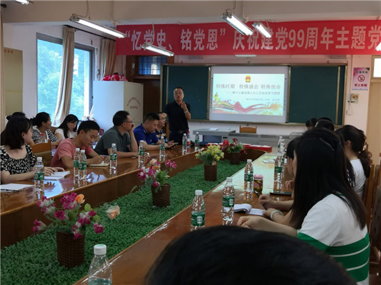 四川新闻网雅安7月1日讯(徐娅娟 文/图)在中国共产党成立99周年之际,雨城区实验小学教育集团党总支在北二路校区举行庆祝活动。 活动首先邀请了全国人大代表庹庆明校长宣讲第十三届全国人大第三次会议精神。庹代表结合自己参加全国人代会的感受,认为教育要做好六保六稳工作,希望广大教师多深入开展调研,多提意见和建议,反映教情,他将代表大家反映民声,努力推动雅安教育上台阶。