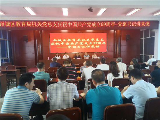 四川新闻网雅安7月2日讯 为弘扬党的优良传统,充分发挥党员的先锋模范作用,激励全区教育系统广大党员“不忘初心、牢记使命”,敢于担当、奋发有为,努力开创教育系统工作新局面。“七·一”期间,雨城区教育局机关党总支开展庆祝建党99周年系列活动。 6月30日下午,雨城区教育局机关党总支召开庆祝建党99周年党员大会。会上,全体党员重温《入党誓词》,庄严宣誓,党员归宿感和光荣感油然而生。区教育局党组书记刘勇同志以《在党史新中国史中领悟共产党人的初心和使命》为题,理论联系实际,结合教育工作,给全体党员上了一堂生动的党课,教育引导全体党员,立足岗位,廉洁自律,向优秀老党员同志们学习,发挥先锋模范作用,全体党员受益匪浅。最后向机关4名优秀共产党员同志颁发“优秀共产党员暨五星党员”证书,引导全体党员见贤思齐,争做优秀党员。