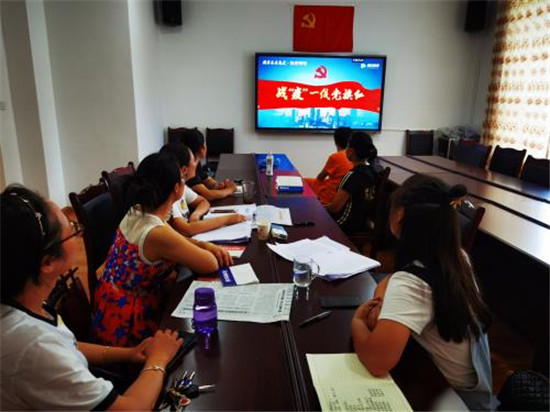 组织党员观看公益片《战“疫”一线党旗红》,学习身边的榜样——童朝辉,学校党支部书记作工作汇报,重温入党誓词,为预备党员转正。
