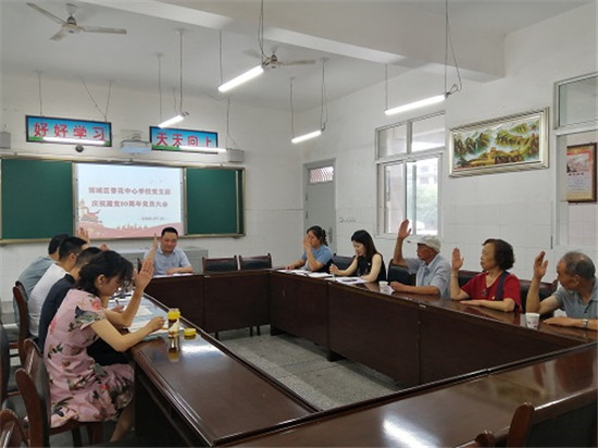 四川新闻网雅安7月2日讯 为庆祝建党99周年,继承党的光荣传统和优良作风,增强党组织的凝聚力和战斗力,激发广大党员教师的理想信念雨城区学校开展庆祝建党99周年活动。
