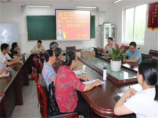 组织全体党员重温入党誓词,学习“两会”精神,对疫情防控、脱贫攻坚、城市“双创”等工作中作出表率的党员教师进行表扬。