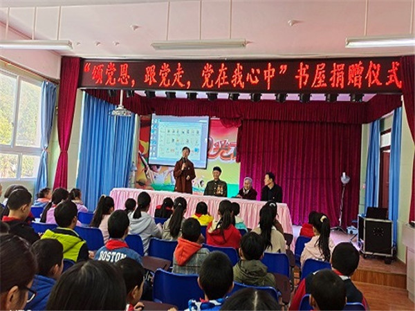活动中,陈荣超夫妇为学校捐赠书籍1000余册,向师生作“颂党恩,跟党走,党在我心中”爱国教育主题宣讲。孩子们表演了自编感恩手势舞《听我说谢谢你》,书写赠送卡片40余张,用音乐和文字向他们表达感恩之情。