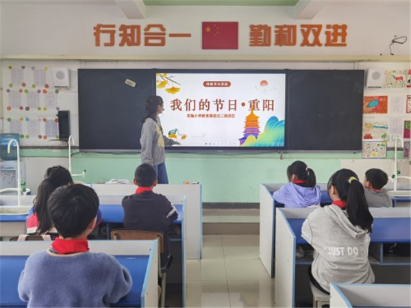活动中,辅导员老师向队员们讲述了重阳节的来历和传说,向大家介绍重阳节赏菊、登高、吃重阳糕、饮菊花酒等习俗,队员们还在老师的带领下满怀激情、声情并茂地朗诵了许多优美的重阳节诗词。最后,辅导员老师还给同学们布置了爱心作业,回家为长辈做一件有意义的事。